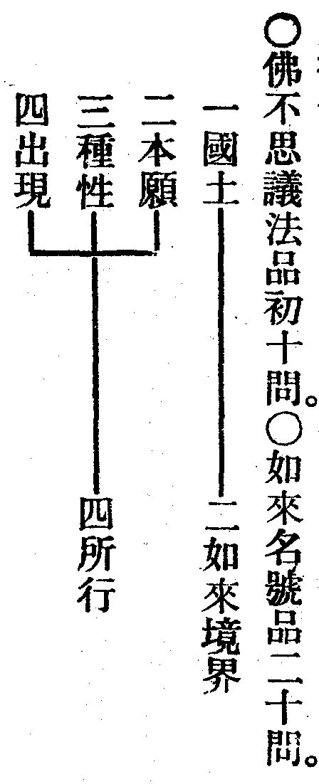 【論】將釋此品.約立四門。一釋品名目。二釋品來意。三釋能說法主。四隨文釋義。一釋品名目者。此品依如來身口智三業得名。云何名不思議。想心不能及.名為不思。情識名言不能及.故言不議。明如來智用。非識心妄情思慮所知故。情亡想寂.智現乃應。名為不思議。二釋品來意者。明前品既說菩薩住處攝生住持之宜。此品即明能化之智。故名佛不思議。非情識議量所為。任智自性徧周。不為應物。故有此品來也。三釋能說法主者。說法菩薩.號青蓮華藏。明前品菩薩.得法成忍.得心自在.號曰心王。此明根本智圓明.清淨無染.名青蓮華。以根本智圓明.能成差別智名藏故。告蓮華藏菩薩者。明根本智告差別智故。為表相成故。此品意明以自心王根本智說差別智.教化眾生.自佛事業大自在用故。為此會中.從阿僧祇品.至出現品.有八品經。總談佛果位中心行法則故。該前五位差別同所歸故。不移十三昧之體普光明智.而有此八品法門.及一部經故。皆約自佛智德.立菩薩名.而說自法.令易解故。四隨文釋義者。於此一品經.長科為三十五段。前三段是問。并佛加持及青蓮華獲益。後三十二段是答。