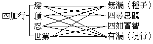 ┌煖 位─┐ │ ├修四尋思觀 │頂 位─┘ 四加行─┤ │忍 位─┐ │ ├修四如實智 └世第一位─┘