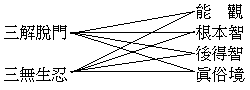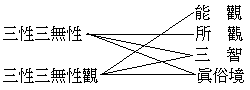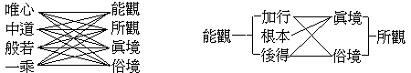 ┌自 我─┐ 遣虛─┤ ├─遍計執───空觀─┐ └造物主─┘ ├─中道觀 ┌法 相───依他起─┐ │ 存實─┤ ├─有觀─┘ └法 性───圓成實─┘