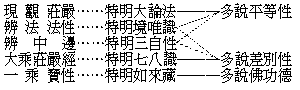大科三段,自成三支比量。略標如立宗,廣釋如出因,譬喻即為喻依,其組織實至嚴密也。(陳濟博,塵空,游隆淨合記)